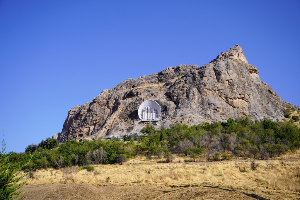 Les soviétiques avaient bien tracé quelques lignes droites, ils avaient aussi pensé à inaugurer une imposante statue de 23 mètres de Vladimir Ilitch, la plus haute d’Asie centrale, où le révolutionnaire indiquait vaguement du bras la direction à suivre. Non loin de l’avenue Lénine, le marché de Jayma avait la réputation d’un marché où tout se vendait sur ses étals. Tout le monde déboulait dans ses ruelles de tôles et de toiles, paraît-il. Nous aurions pu voir tout cela. Mais les temps changaient trop vite ou alors nous étions trop lents. Osh cassait ses rues lorsque nous arrivions, répondant à une volonté urgente de rénovation urbaine. La statue du commandeur suprême venait d’être déboulonnée du centre ville un mois plus tôt, elle aussi, signe d’une prise de distance avec les russes. Quant au marché tant couru, il avait tout simplement disparu sous les eaux du Naryn l’année précédente. L’ancien monde n’était plus, le nouveau n’était pas encore arrivé. Osh nous semblait anonyme, déserté par l’histoire, sans repère véritable et difficile à cerner. Restait tout de même un drôle de musée niché dans la grotte rose boudoir d’une montagne sacrée en plein cœur de la ville. Nous n’apprenions rien mais profitions de la fraicheur naturelle autant que de la décoration étonnante qui deviendrait certainement un jour cultissime.