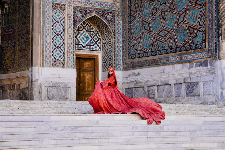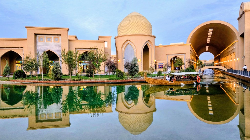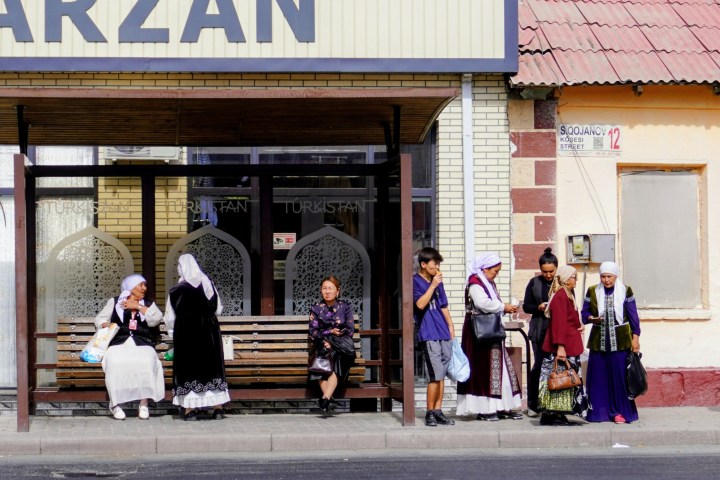 Aujourd’hui, un déroutant complexe immobilier fait ceinture autour du mausolée. Moderne et fringué comme un parc d’attraction, le Turkestan du XXIe siècle affiche son ambition de devenir une mecque en Asie centrale. Tout est propre et rigoureusement ordonné, les rues piétonnes pavées ont définitivement chassé la poussière des steppes. Les vitrines remplies de baskets ennuyeuses, de t-shirts inspirés d’ailleurs afficheront bientôt en anglais leurs promotions. On finira par se croire partout c’est-à-dire nulle part. Nous nous y promènons un soir avant de faire demi-tour le lendemain sans trop de regrets.
