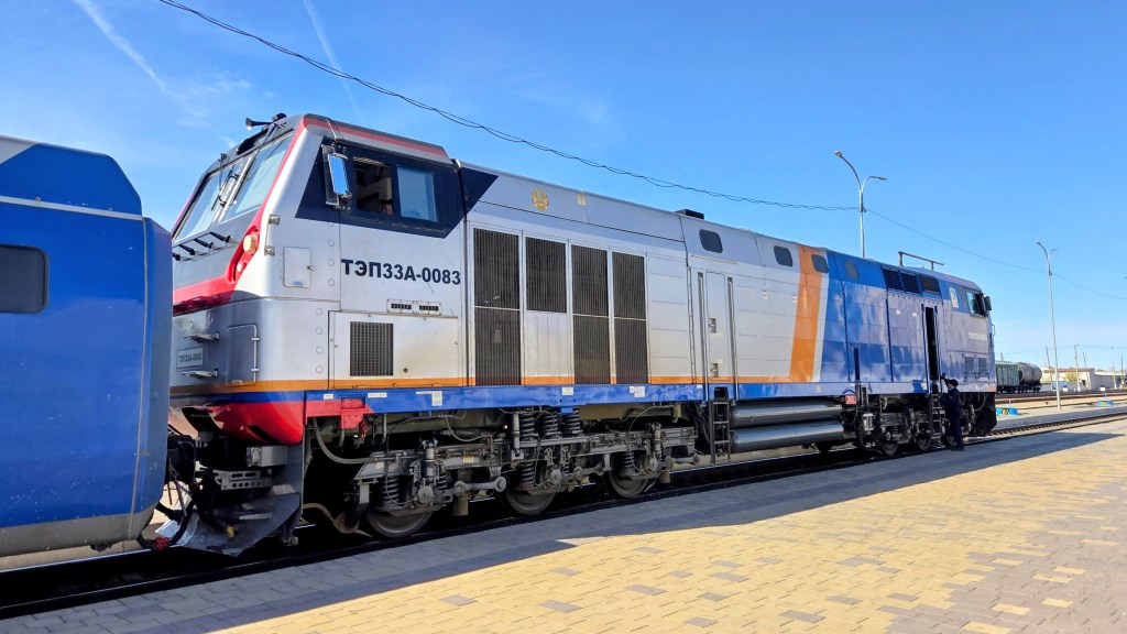 La nuit, le jour, à travers les plaines de sable jaunes, nous traversons les steppes du Kazakhstan sur un cheval de fer.