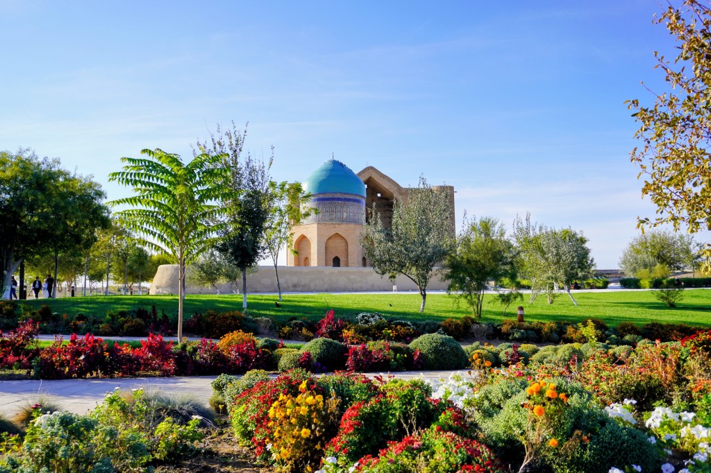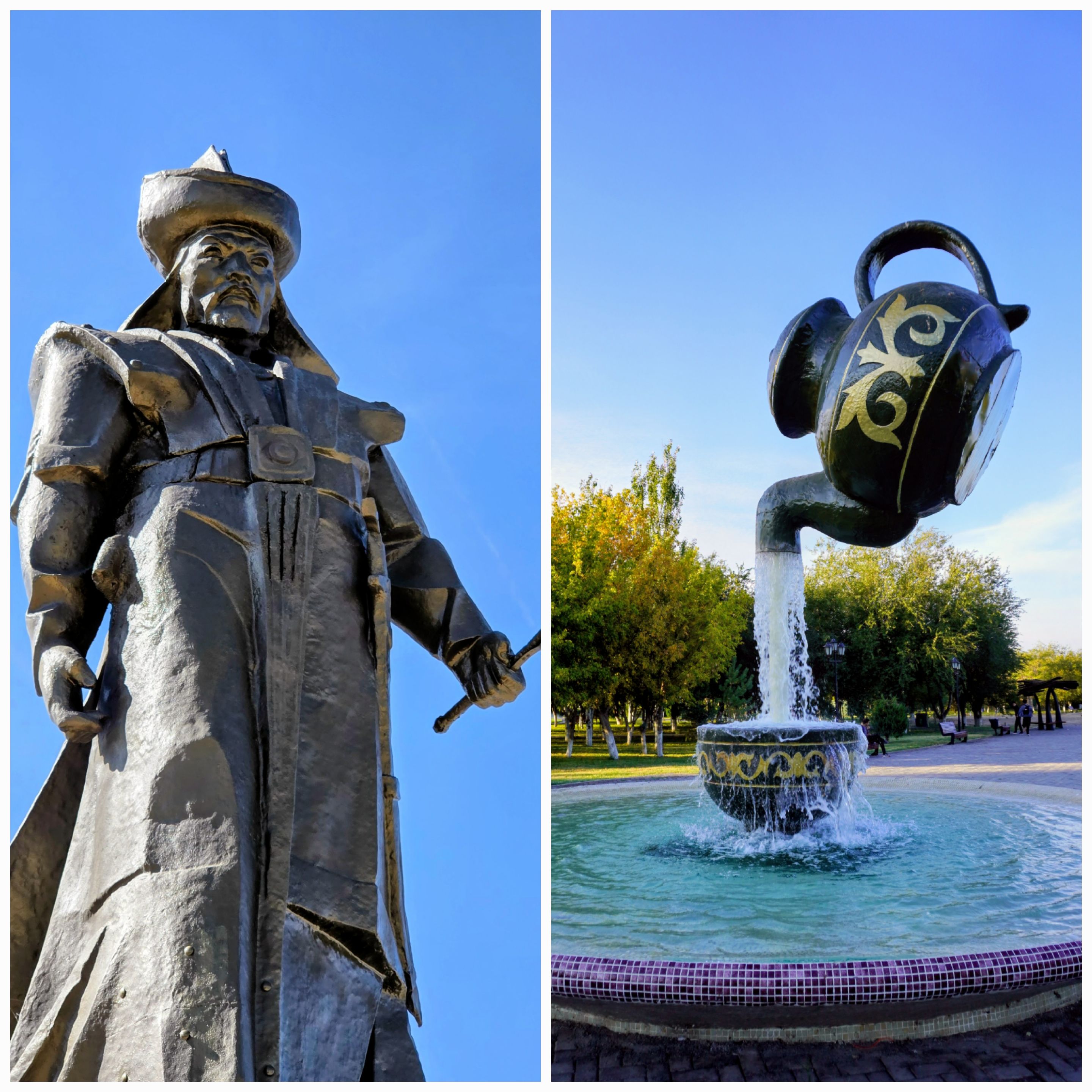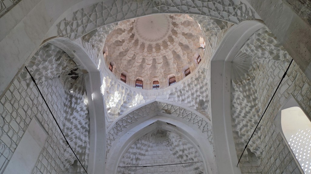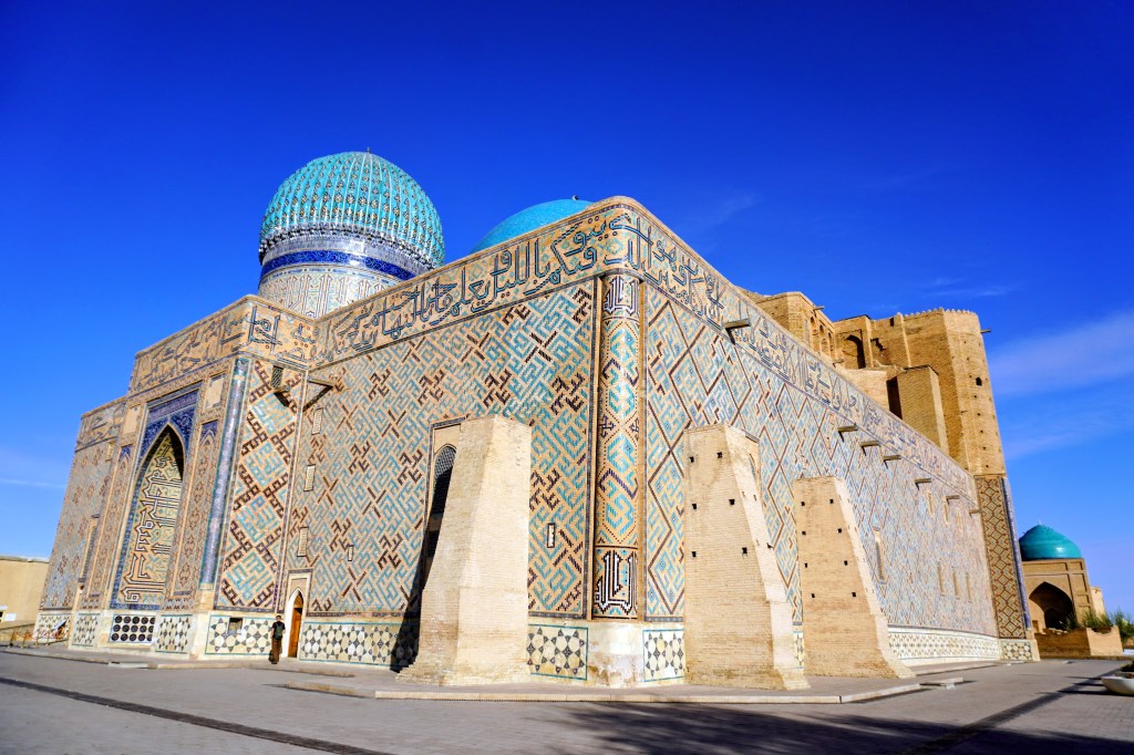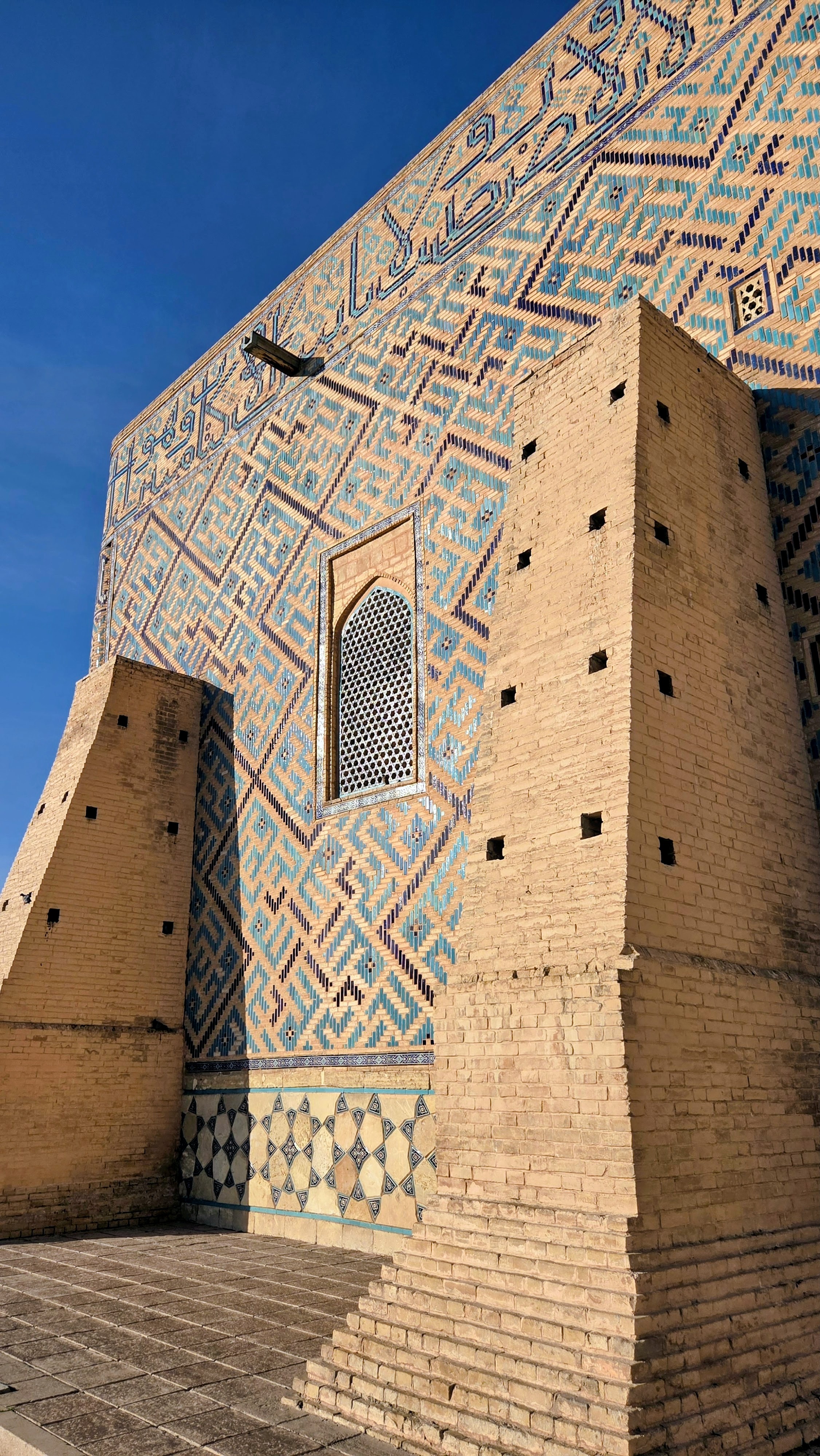 Turkestan c’est le nom d’un pélerinage. Il attire chaque année des milliers de croyants venus honorer la mémoire du maitre soufi Khoja Ahmed Yasavi. Respecté dans toute l’Asie centrale depuis le XIIe siècle, ce penseur et poète mystique se vit bâtir au XIVe siècle un mausolée à Yasi, l’ancienne Turkestan, où il vécut. Timur, spécialiste des excès en tout genre, fût l’initiateur du projet et transforma le petit mausolée existant en un vaisseau de brique coiffé du plus grand dôme d’Asie centrale. Il ne fût cependant jamais achevé après la mort du conquérant et le mausolée parvint ainsi jusqu’à notre XXIe siècle, monumental mais inaccompli.