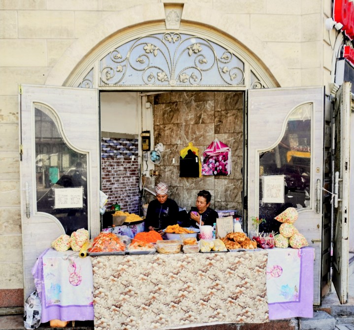 On rebroussait chemin pour rejoindre à pied la gare à une dizaine de kilomètres de là en longeant la large avenue parcourue en sens inverse à l’aller. Nous faisions une dernière fois escale dans la vieille ville où le bazar générait autant de bruit que de bavardages et de joie. La foule affluait, tout était à vendre, les étals affichaient toutes les couleurs, toutes les odeurs du monde. Et il nous semblait que c’était plutôt là, au milieu des pains ronds encore tièdes, des bouteilles recyclées pleines de kumiz onctueux, des monceaux de tomates et des grappes de raisins entassées sur les charettes que la route éternelle prenait racine et continuait à cheminer dans la steppe. Tout le reste finalement n’était que distractions éphémères sans grande importance.
