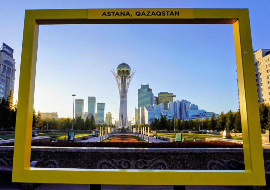 Au lendemain de l’indépendance, le président Nazarbaïev décide à partir de 1994 de déménager le centre du pouvoir d’Almaty vers le nord du pays à Akmola devenant officiellement en 1998 Astana, qui signifie « Capitale » en kazakhe. Cette transhumance des ministères est alors l’occasion pour Nazarbaïev de lancer un programme pharaonique de travaux immobiliers. Un collectif international d’architectes, avec notamment le japonais Kishō Kurokawa, est alors chargé d’inventer de toute pièce une ville avant-gardiste sur une feuille vierge où jusqu’à présent seule l’herbe voulait bien pousser.