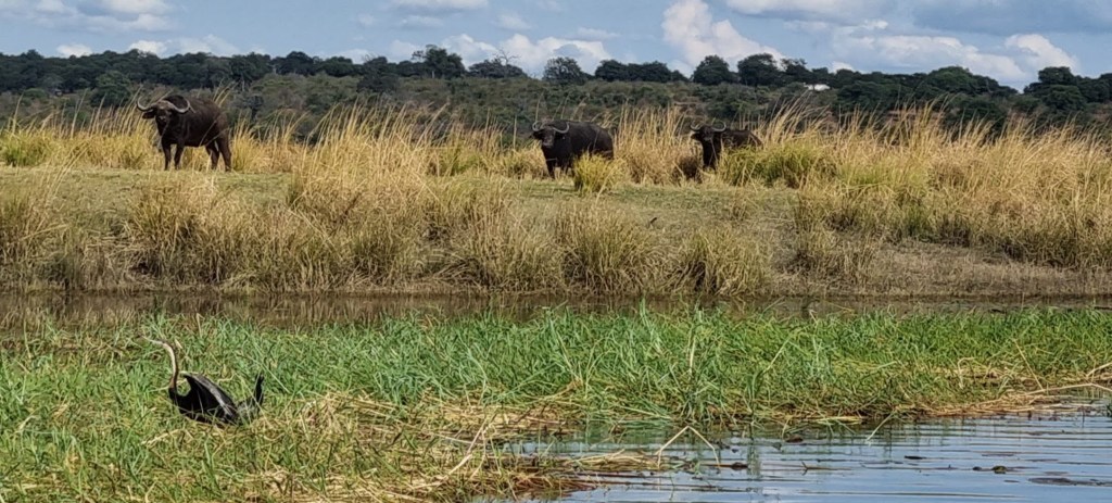 Un peu plus loin, on aperçoit des koudous, cousins des impalas, puis des buffles.