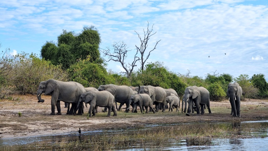 En naviguant sur la rivière Chobe, on peut apercevoir une multitude d’oiseaux, des marabouts, des martins-pêcheurs pie, des francolins, un aigle pêcheur, des cormorans africains et tant d’autres que l’on n’a pas pu identifier.