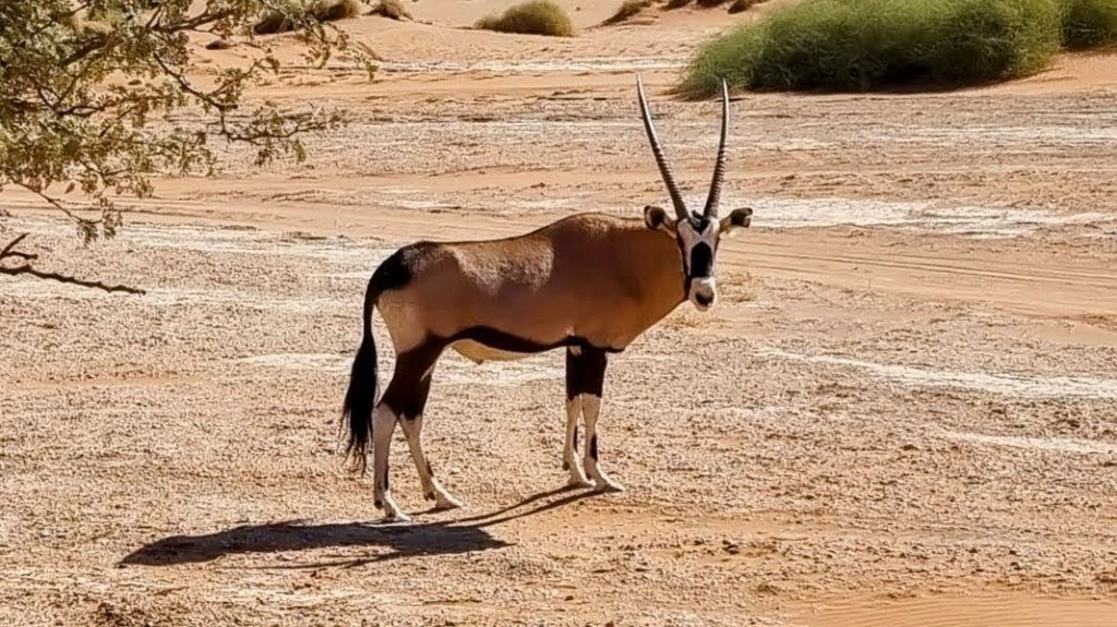 BIG MAMMA On peut voir de grands mammifères adaptés à ce milieu hostile, des springboks, des oryx. Ce dernier étant l’emblème du pays. De nombreux reptiles ( lézards, geckos) y vivent et aussi des petits rongeurs ( gerbilles, taupes,…).