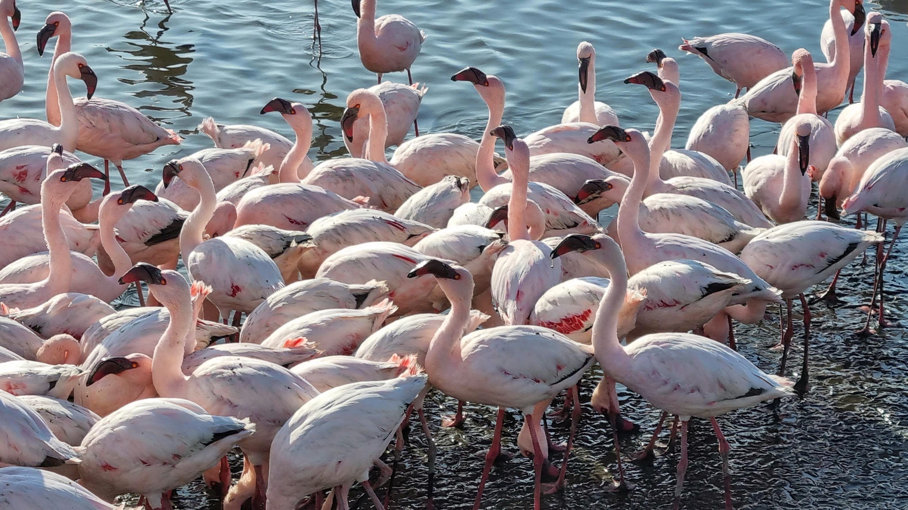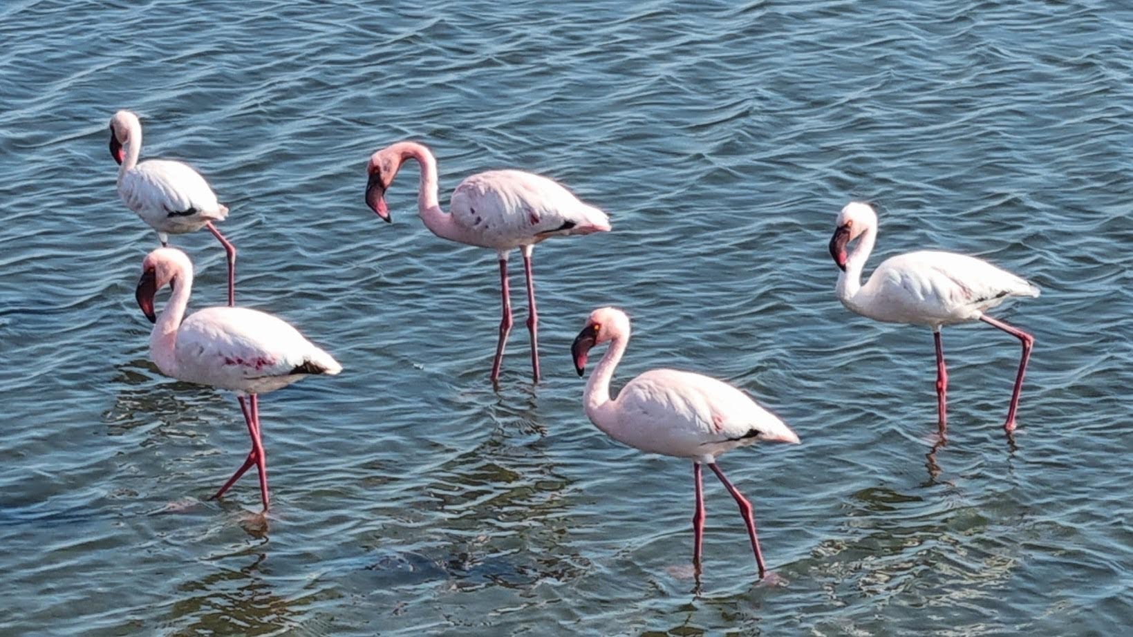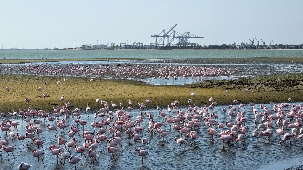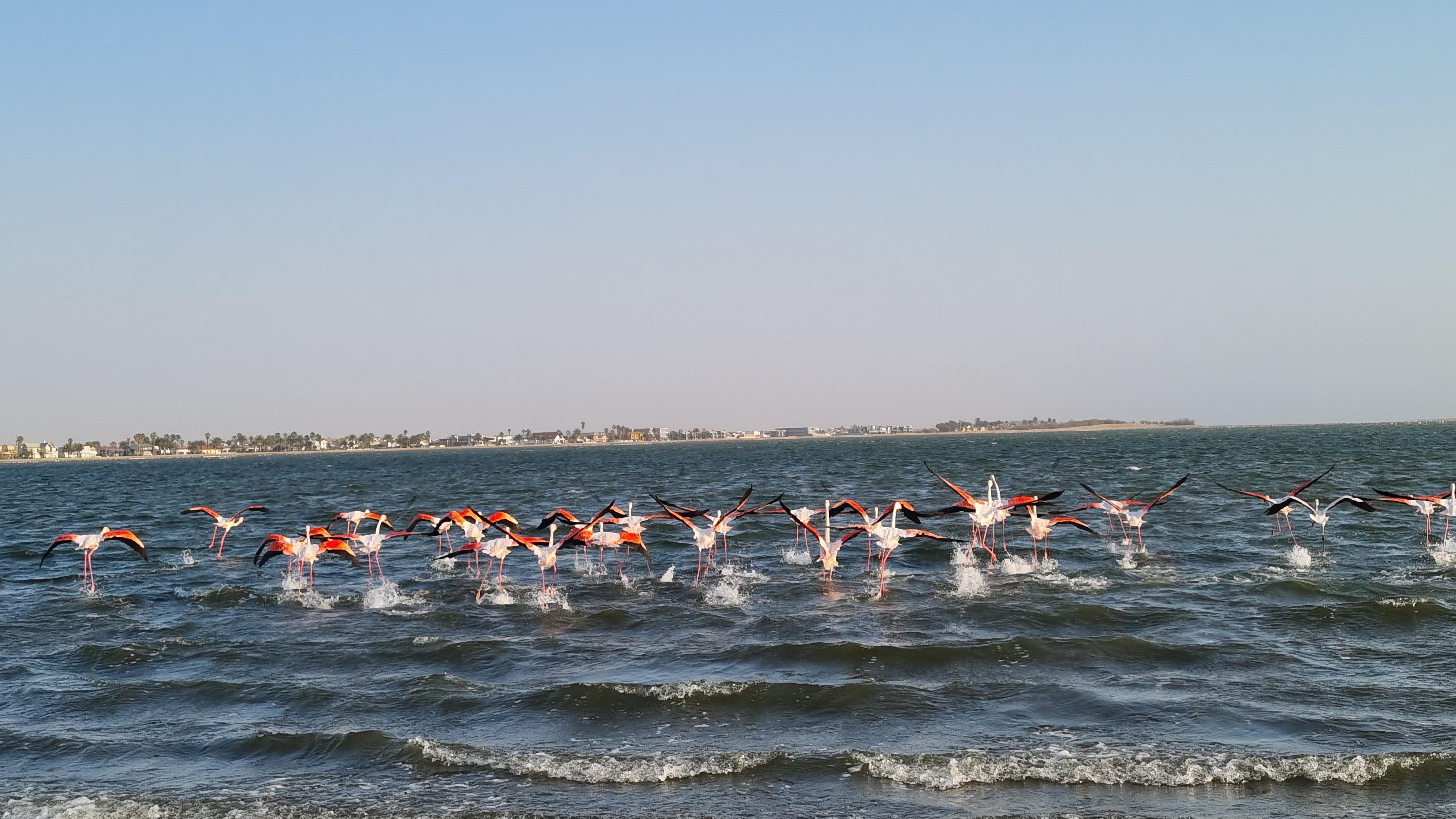 L’esplanade permet une promenade le long de la baie jusqu’au ponton d’environ 4 kilomètres avec toujours en toile de fond, le ballet hypnotique de flamants roses piétinant la vase à la recherche de nourriture, ou marchant tranquillement avant de s’envoler un peu plus loin pour un éternel recommencement.